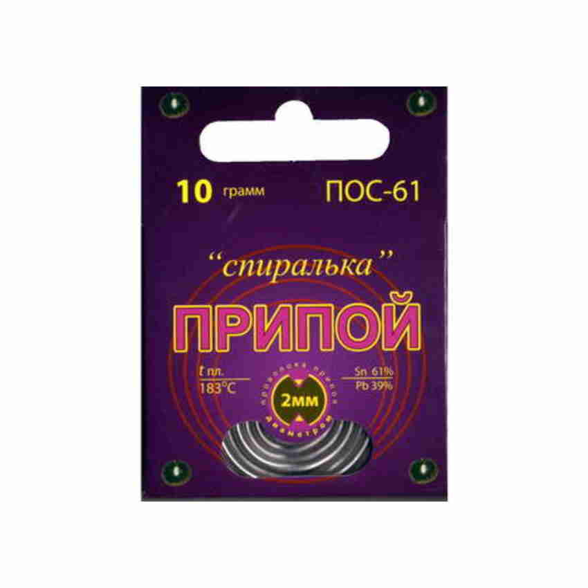 Припой ПОС-61 2.0ММ 10 ГР СПИРАЛЬКА В ПАКЕТЕ, Артикул 110012337