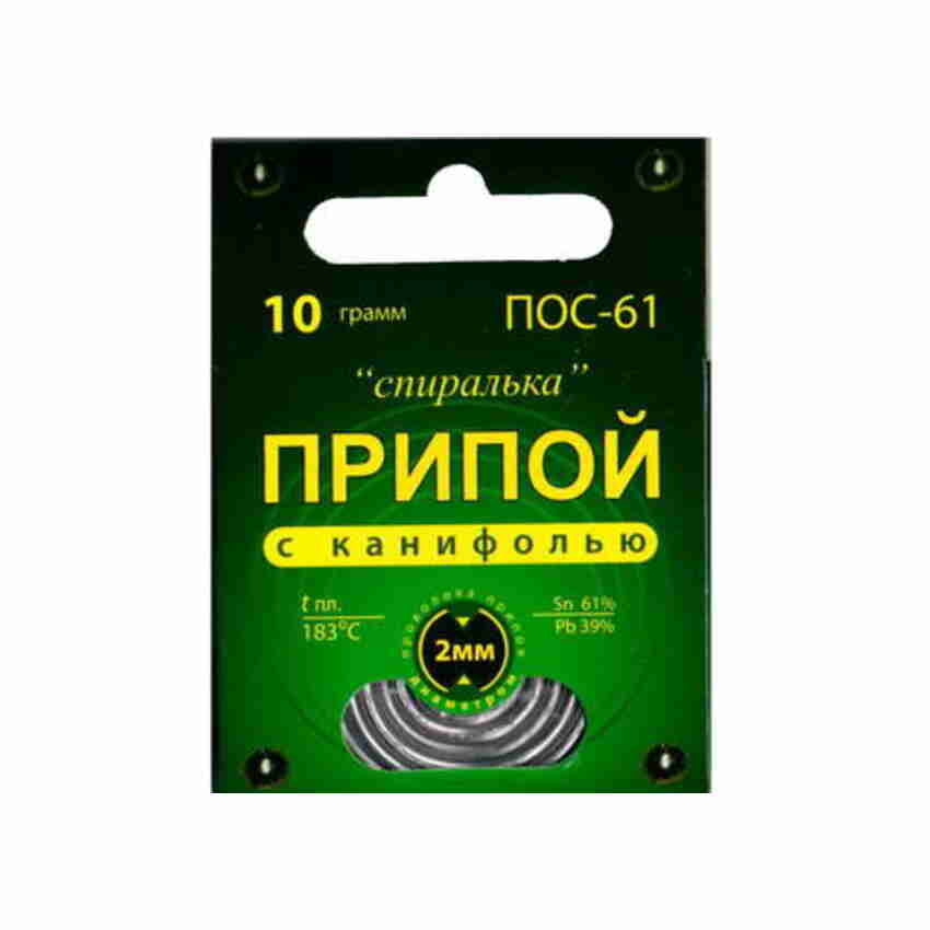 Припой ПОС-61 2.0ММ 10 ГР СПИРАЛЬКА В ПАКЕТЕ С КАНИФОЛЬЮ, Артикул 110012338